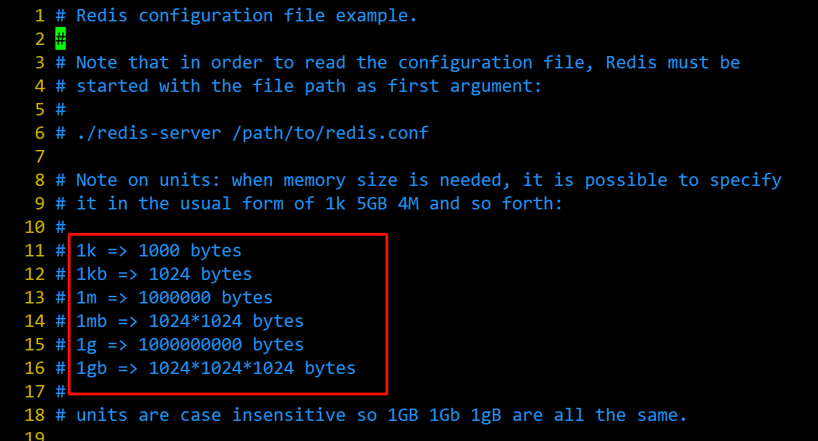 配置大小单位, 开头定义了一些基本的度量单位,只支持bytes.