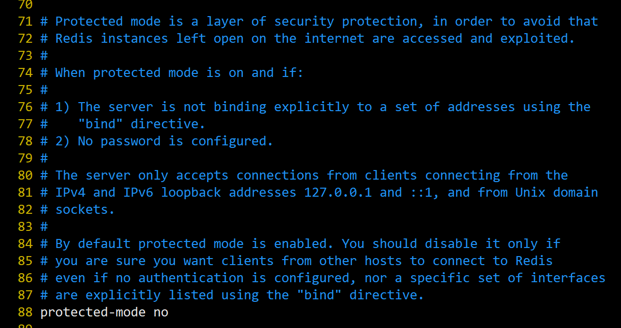 如果开启了protected-mode,那么在没有设定bind ip且没有设密码的情况下,Redis只允许接受本机的响应。
