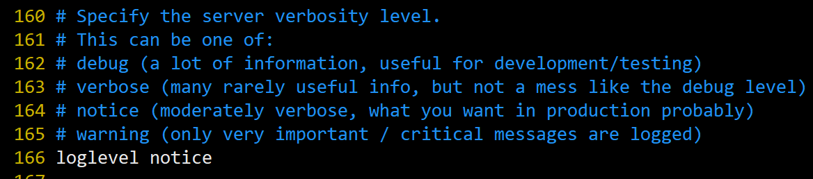 指定日志记录级别,Redis总共支持四个级别: debugverbosenoticewarning,默认为notice