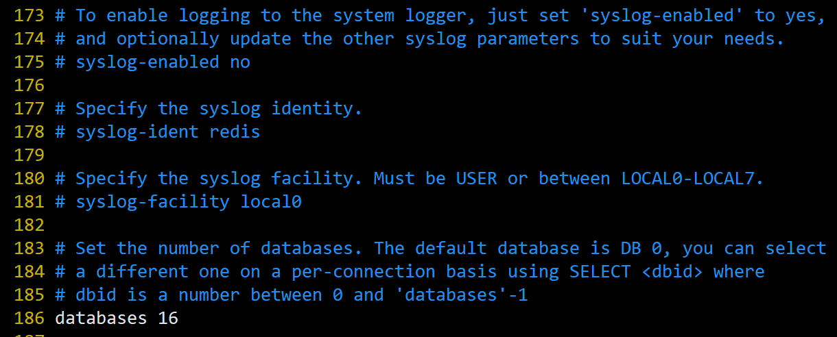 设定库的数量 默认16,默认数据库为0,可以使用SELECT <dbid>命令在连接指定数据库id。