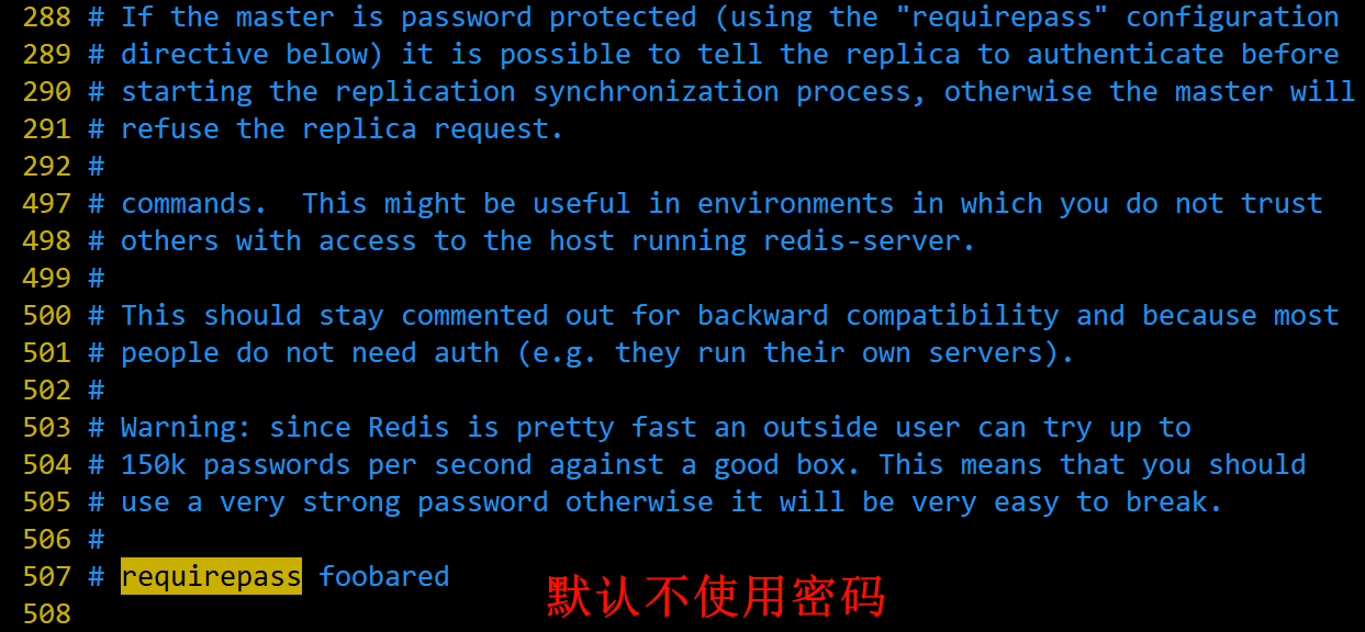 如果想要设置密码访问redis,需要进行如下配置: