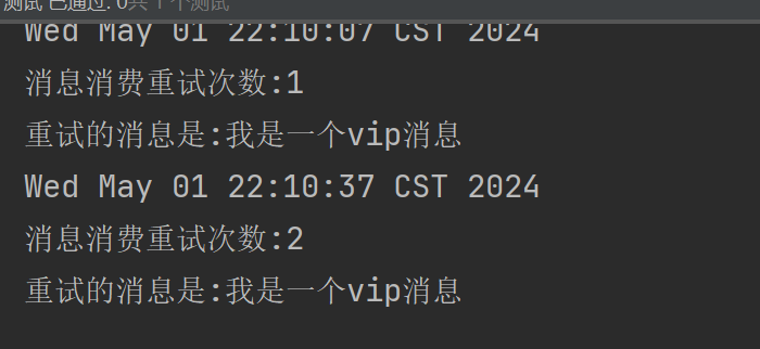 Message message = new Message("retryTopic", "vip1", UUID.randomUUID().toString(), "我是一个vip消息".getBytes());