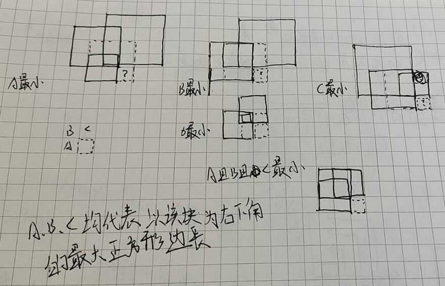 说实话, 我看了很多题解, 上来就是状态转移方程, 就算说了状态, 也不细说是怎么思路转过来的. (怎么想到的?!, 我不太可以理解, 所以我愿意称这个是一类新的题目...即, 反正都理解不了, 为什么不先把它记住, 多用几次, 内化于自己的思想, 到时候说不定就变成: 不这样还能这样? の自分想法(反正我现在就是画了一下, 似乎有点get了, 但是讲不出来... 但是它还有类似的同类题可以练手: 1277. 统计全为 1 的正方形子矩阵))