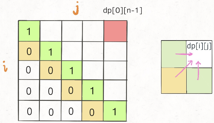 如图, 并且要保证 i < j, 然后是需要优先知道dp[i + 1][j - 1]的数值