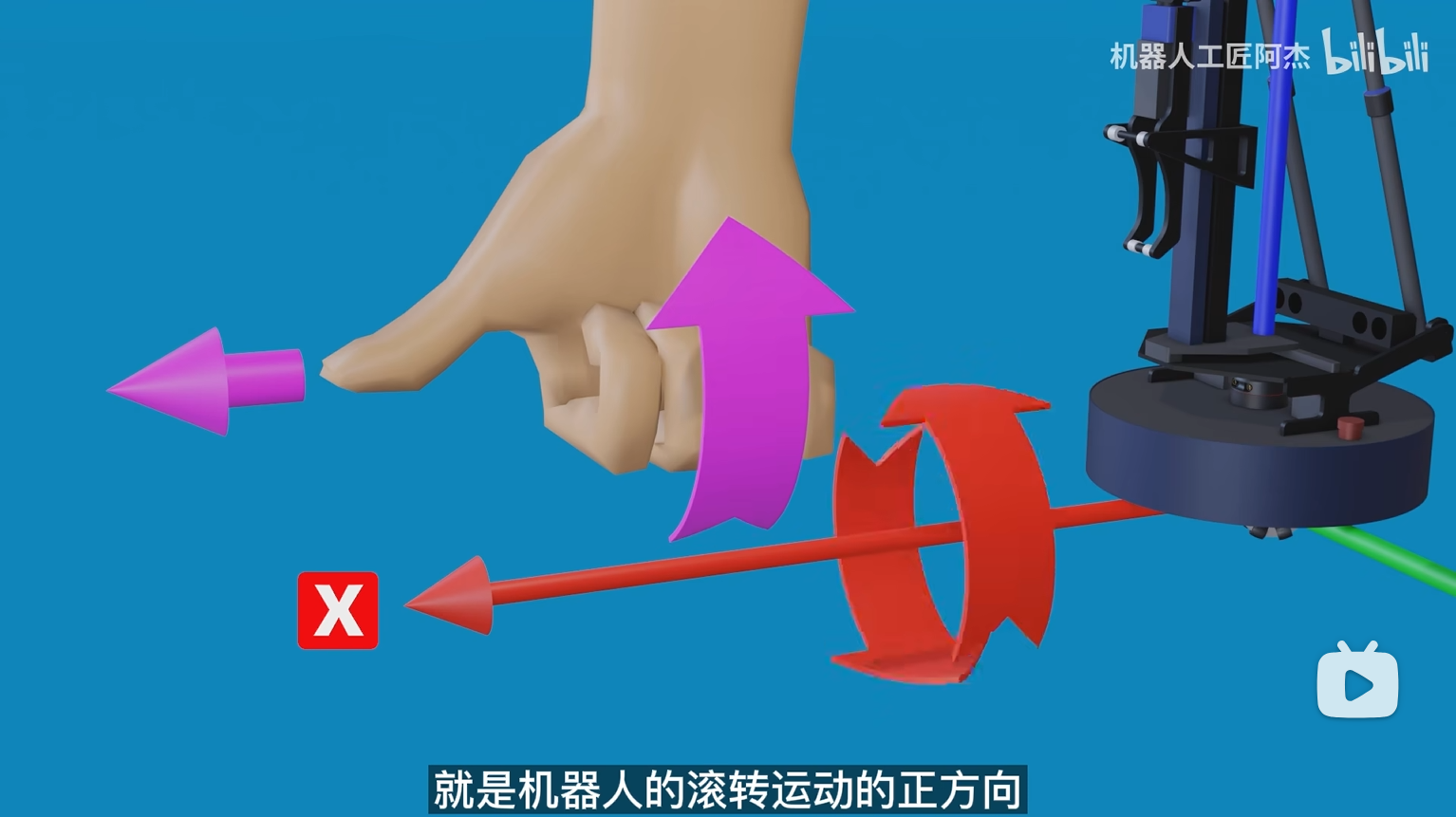 | 其他的同理: 右手螺旋, 大拇指指向坐标轴正方向, 四指方向即为滚动正方向 |