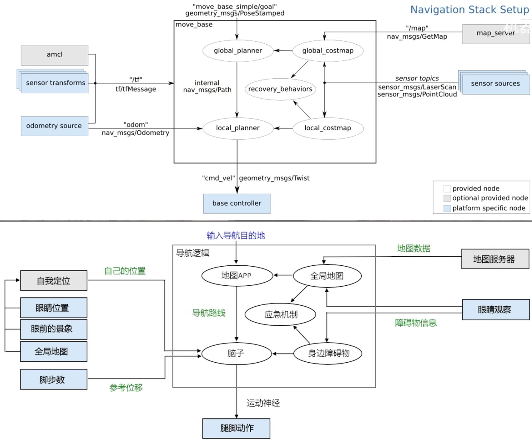 move_base里面内置了两种导航算法, 一种是Dijkstra算法 (性能没有A*好, 但是是最优最短路, 曲线会更平滑), 还有一种就是A*算法