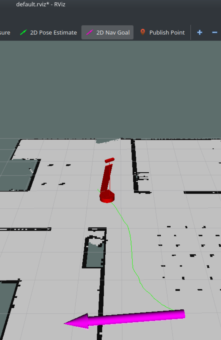 然后启动rviz, 添加map, path, 并且选择话题, 然后通过2D Nav Goal来标注导航的目标点