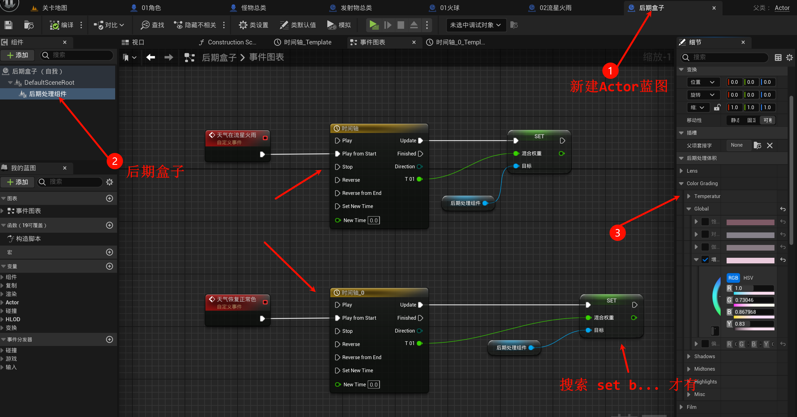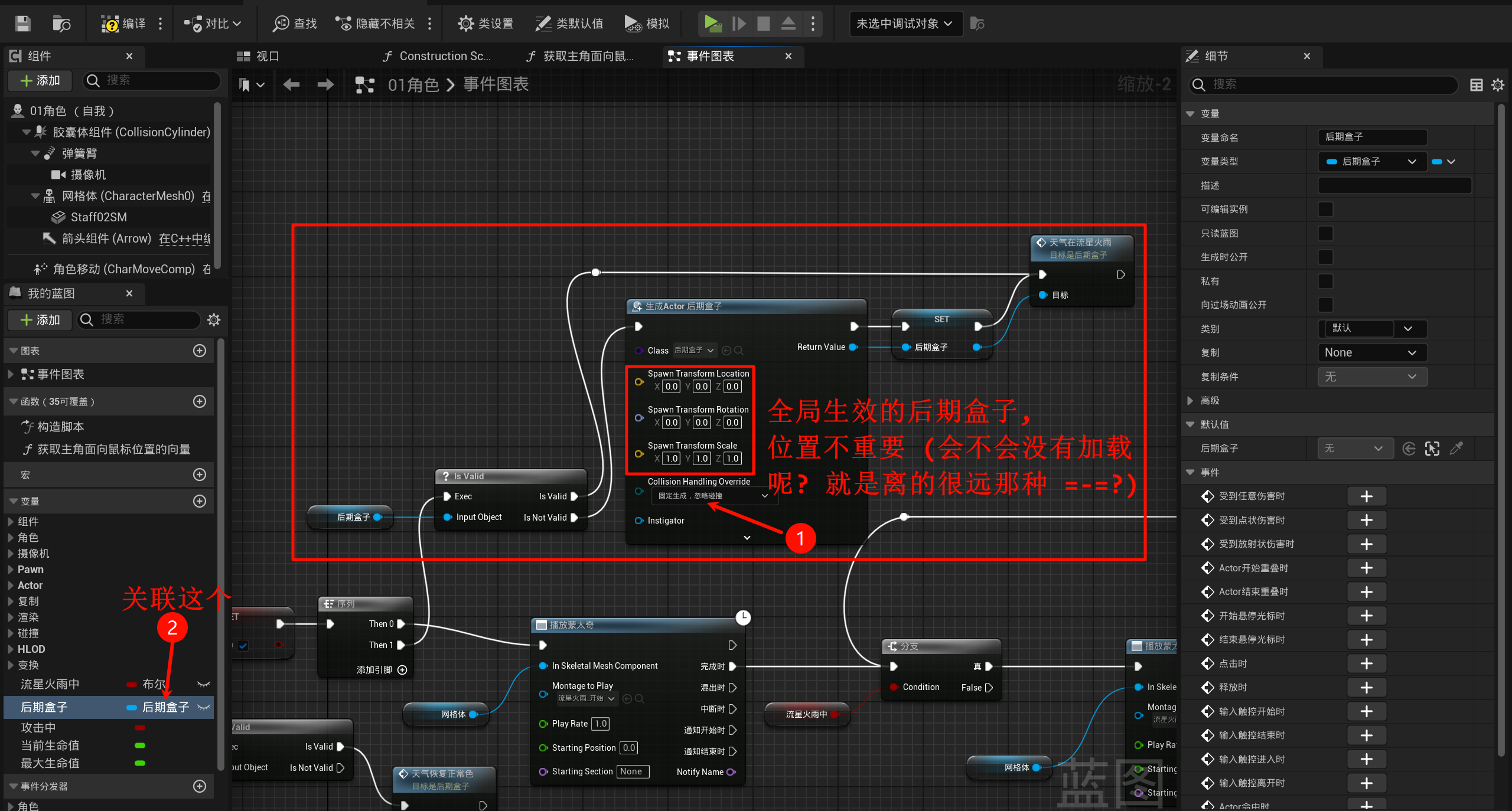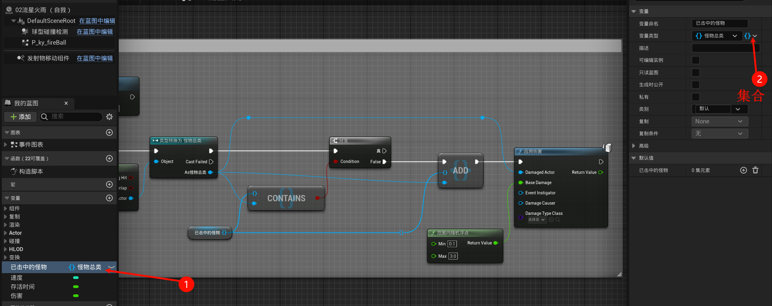 有点麻烦了qwq, 现在新建一个02流星火雨继承发射物总类蓝图(其实之前就应该建立的qwq(偷懒不好)), 因为需要做火球的范围爆炸伤害: