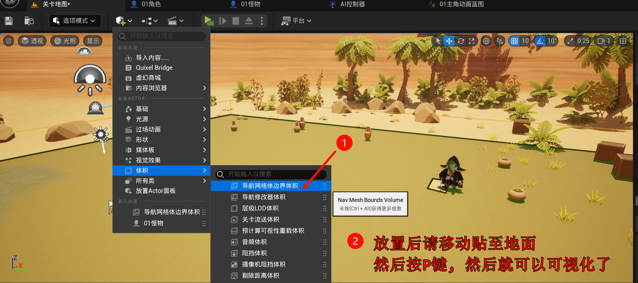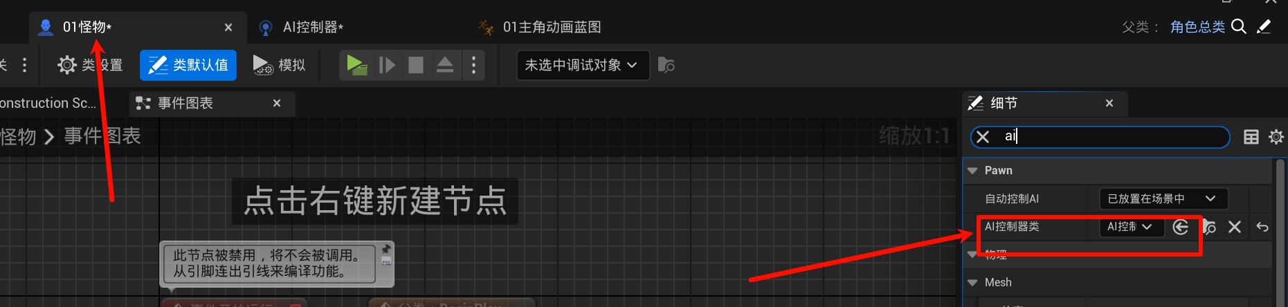 注: 此处留下了一个坑, 即自动控制AI已放置在场景中, 如果之后这个怪物是刷(生成)的, 可能有BUG.