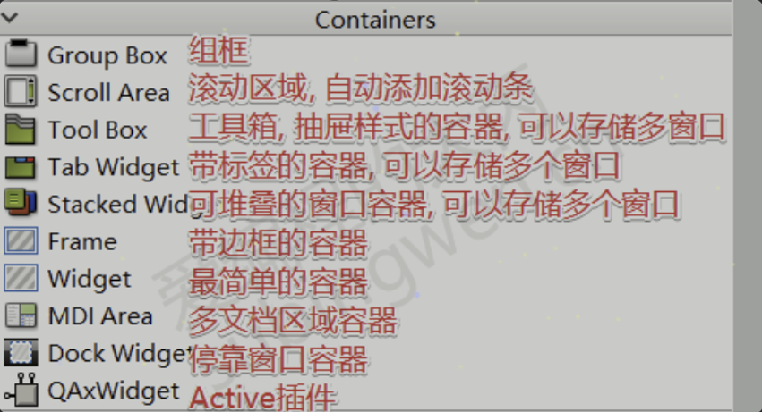 在Qt中我们除了使用QWidget类型窗口作为容器使用, 也可以根据实际需求选择其他类型的容器, 下面看看具体都有哪些。