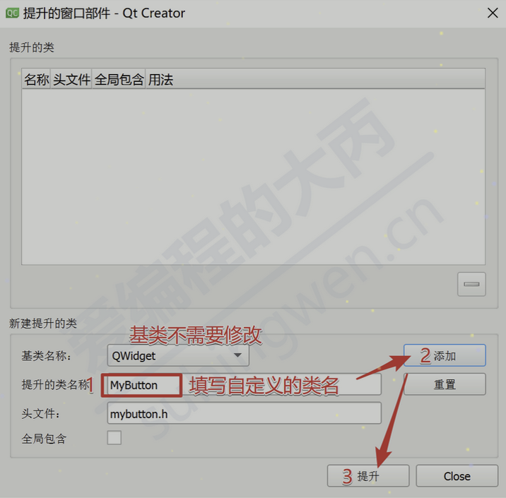 创建一个Qt项目,添加一个窗口类(让其从某个标准窗口类派生)