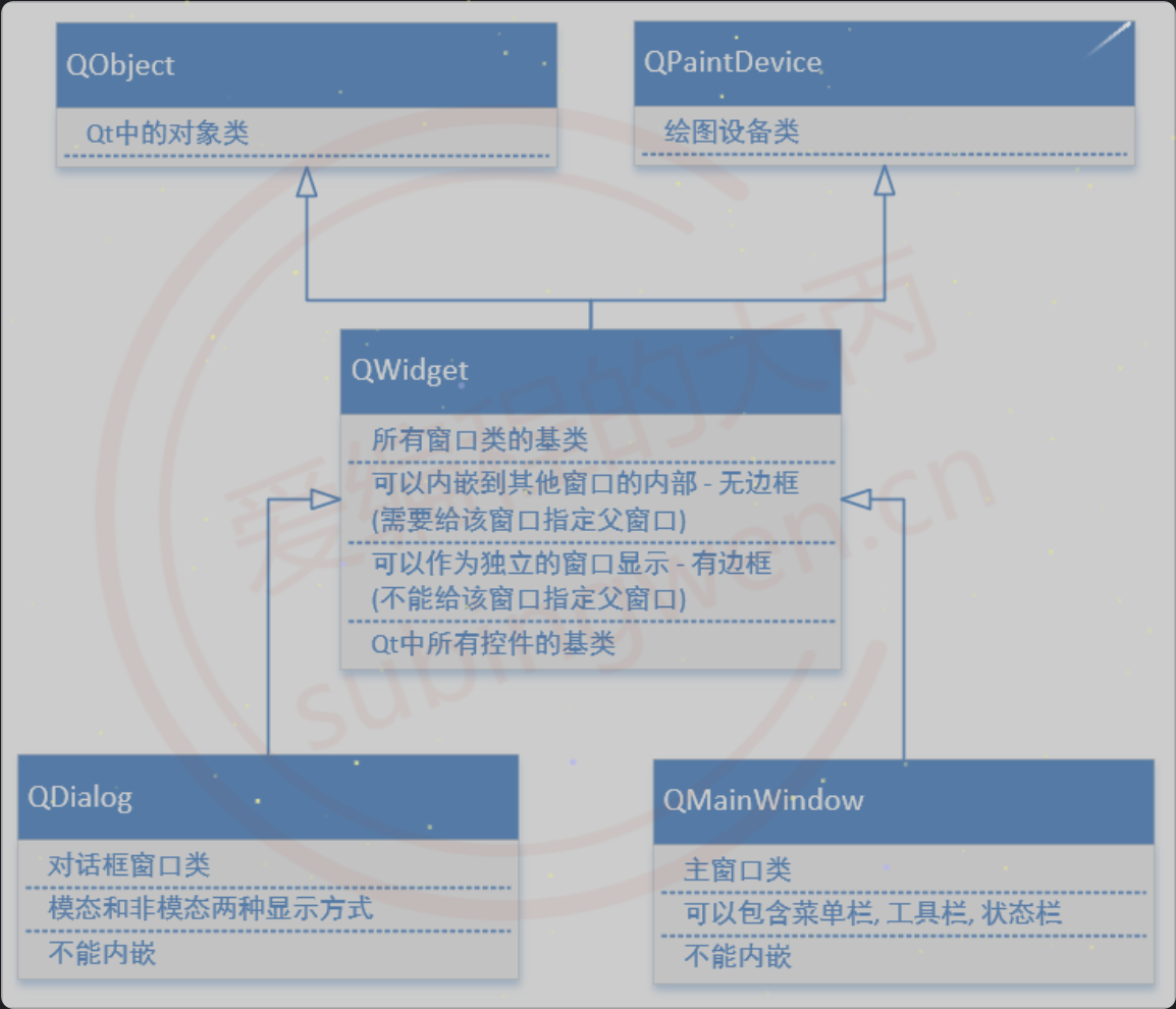 我们在通过Qt向导窗口基于窗口的应用程序的项目过程中倒数第二步让我们选择跟随项目创建的第一个窗口的基类, 下拉菜单中有三个选项, 分别为: QMainWindow、QDialog、QWidget如下图: