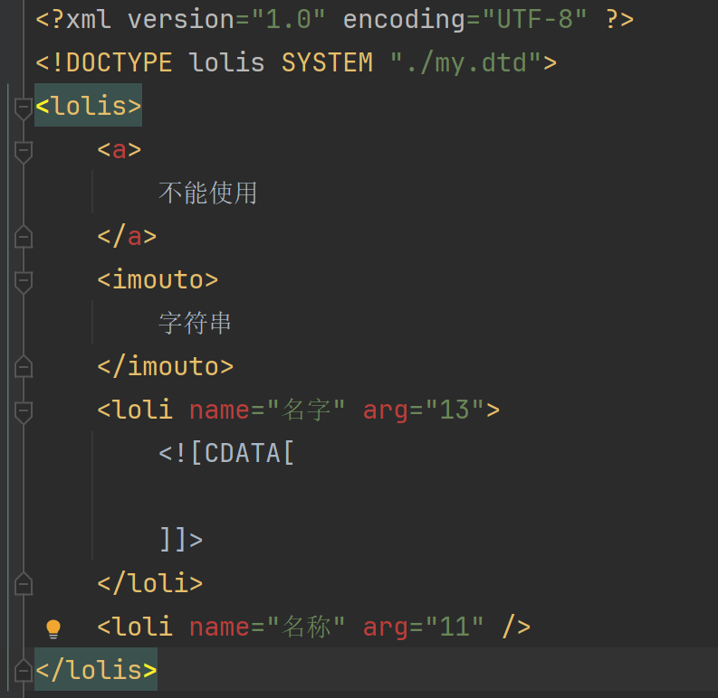 <!DOCTYPE lolis SYSTEM "./my.dtd">