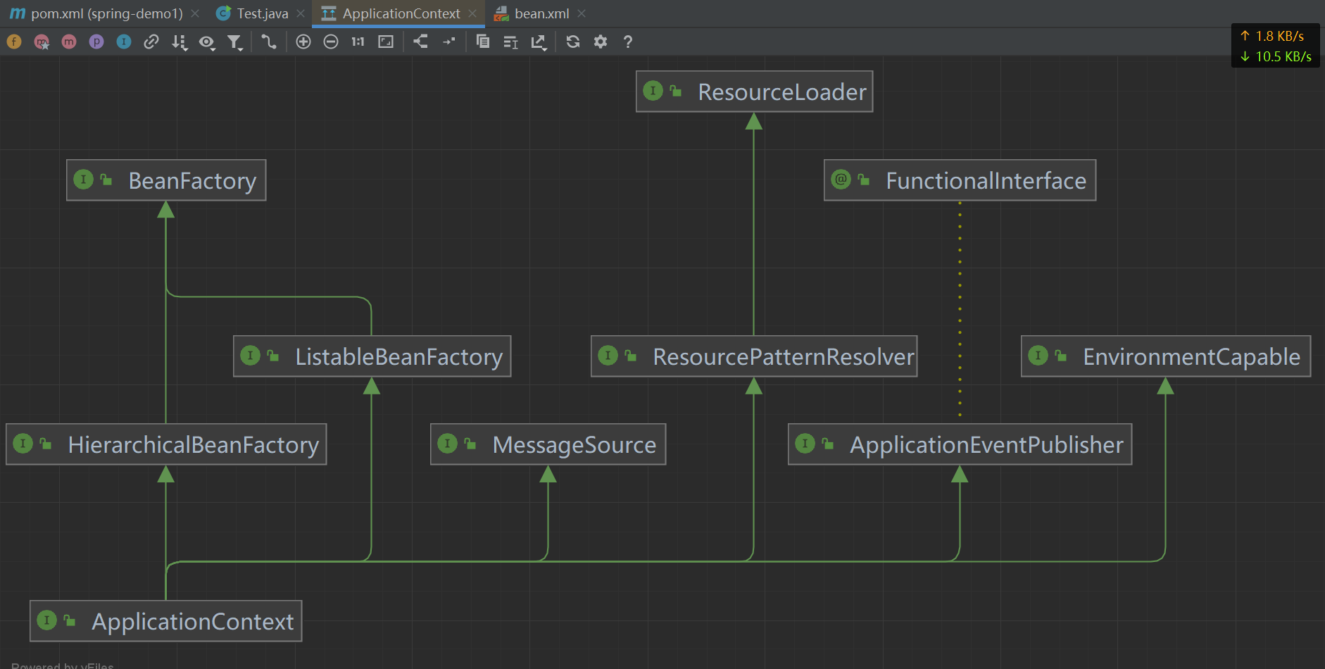 我们发现ApplicationContext继承了BeanFactory。BeanFactory才是顶级容器。