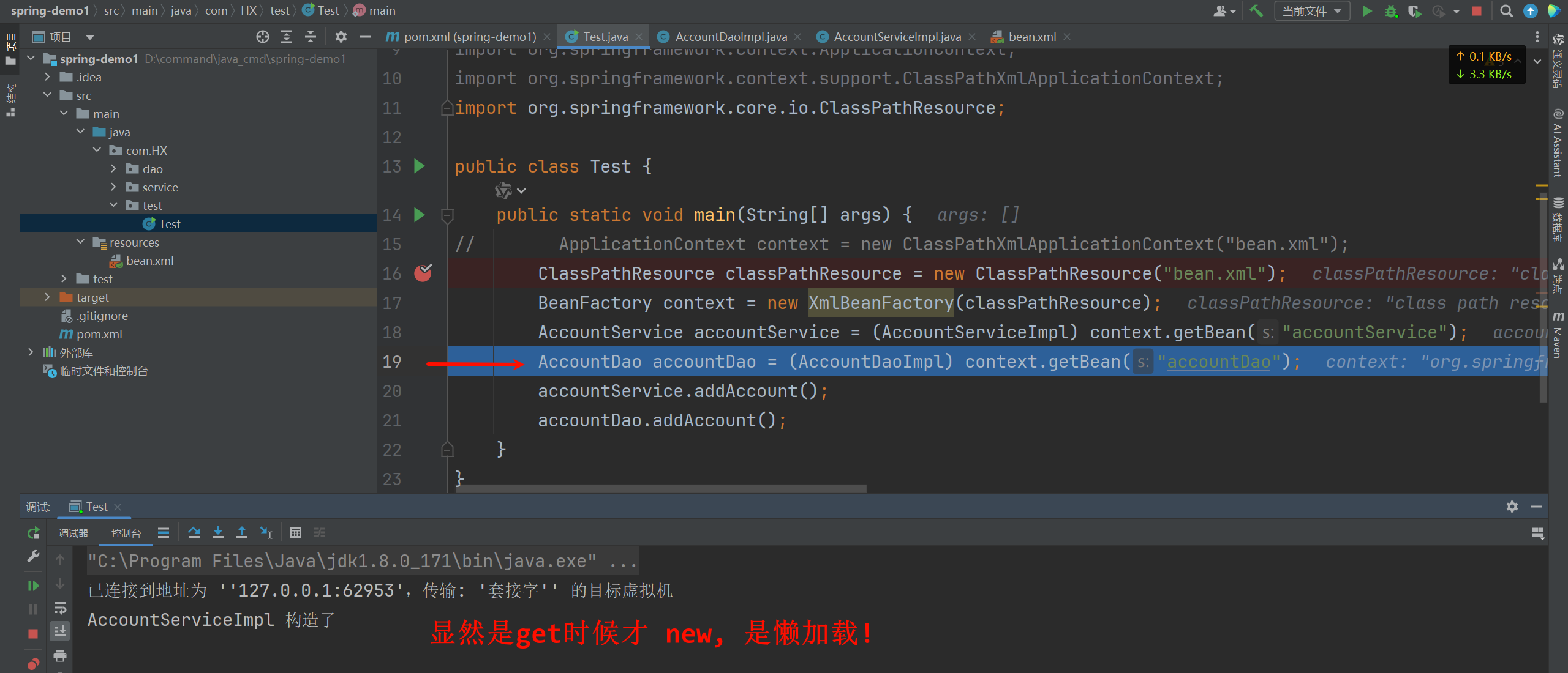 可以看到,当配置文件一旦加载完成,对象就已经创建。