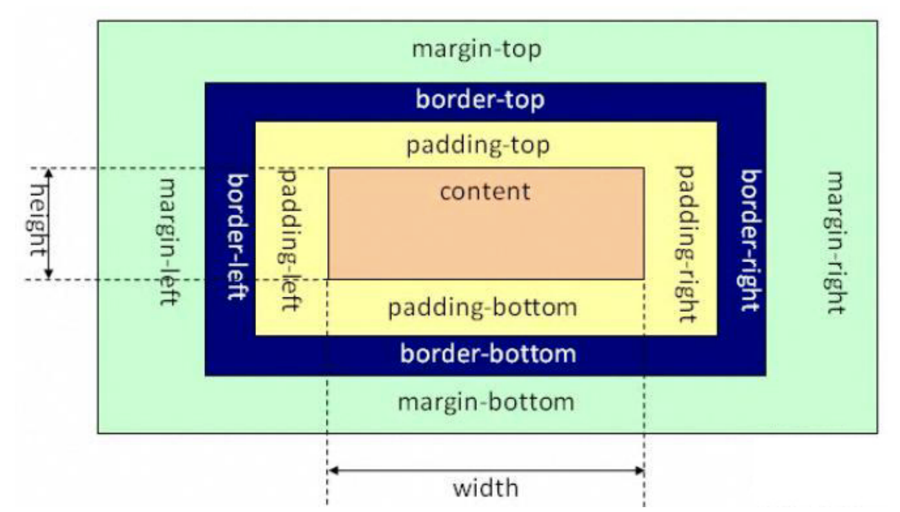 • 元素的总宽度 = 左外边距 + 左边框 + 左内边距 + 宽度 + 右内边距 + 右边框 + 右外边距