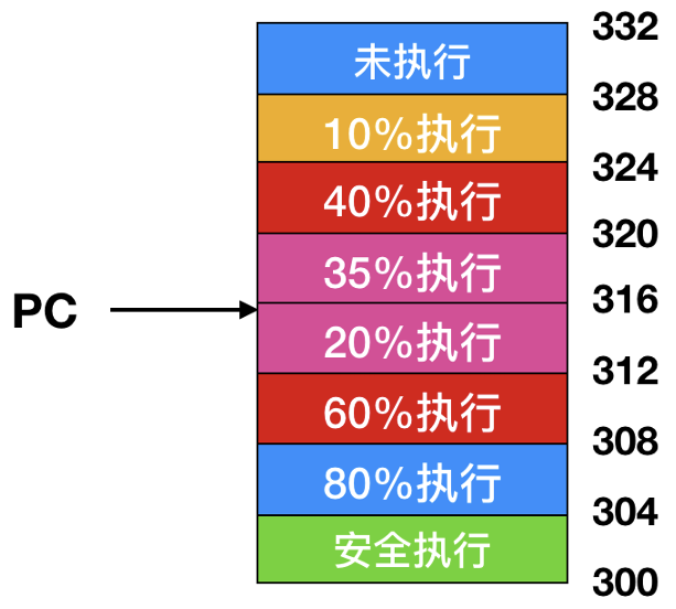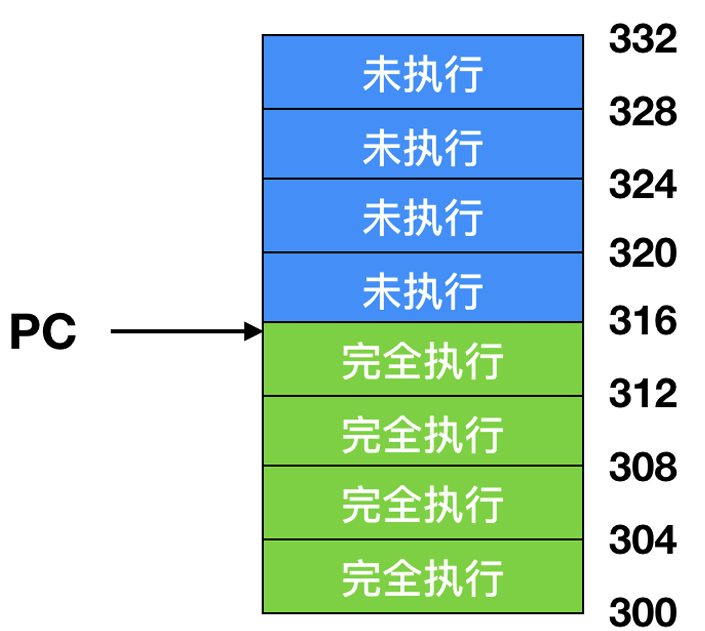 这些指令的完成状态与程序计数器(PC)之间没有直接的对应关系。程序计数器通常用于指示当前正在执行的指令或即将被执行的下一条指令的地址, 但在乱序执行的环境中, 它并不能准确地反映所有指令的执行进度。例如, 即使程序计数器指向某条特定的指令, 该指令的实际执行状态可能仍然是未知的, 因为它可能正在等待某个功能单元的空闲或某个寄存器的值。