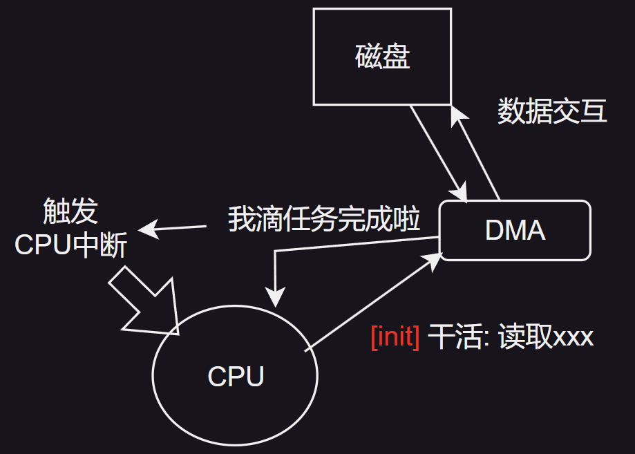 在多数情况下, 物理IO(physical I/O)操作是以 异步 方式进行的。这里的“异步”意味着CPU在启动数据传输后, 并不会停滞等待数据传输完成, 而是会继续执行其他任务。CPU的这种设计体现了其高效利用资源的智慧。