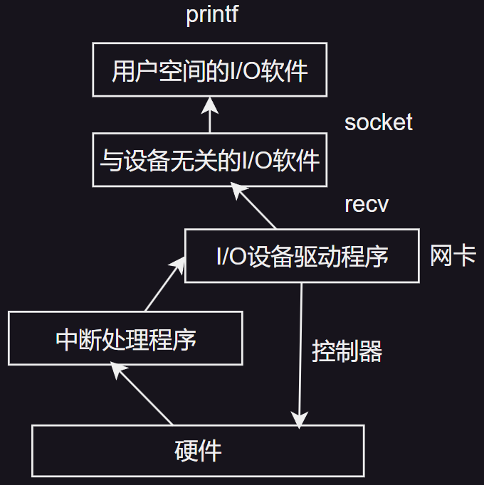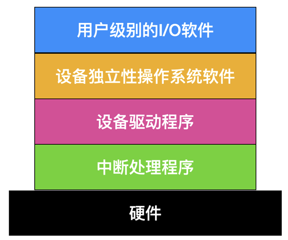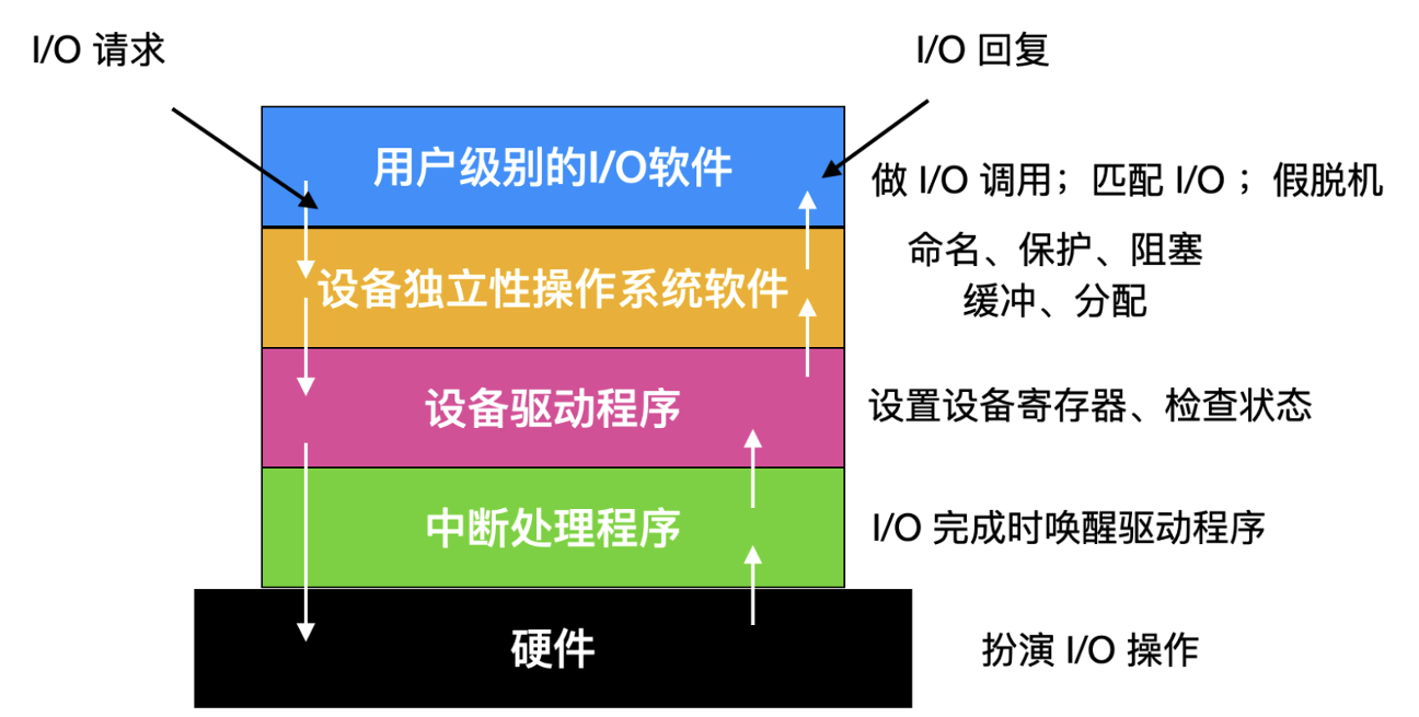 I/O 软件通常组织成四个层次, 它们的大致结构如下图所示: