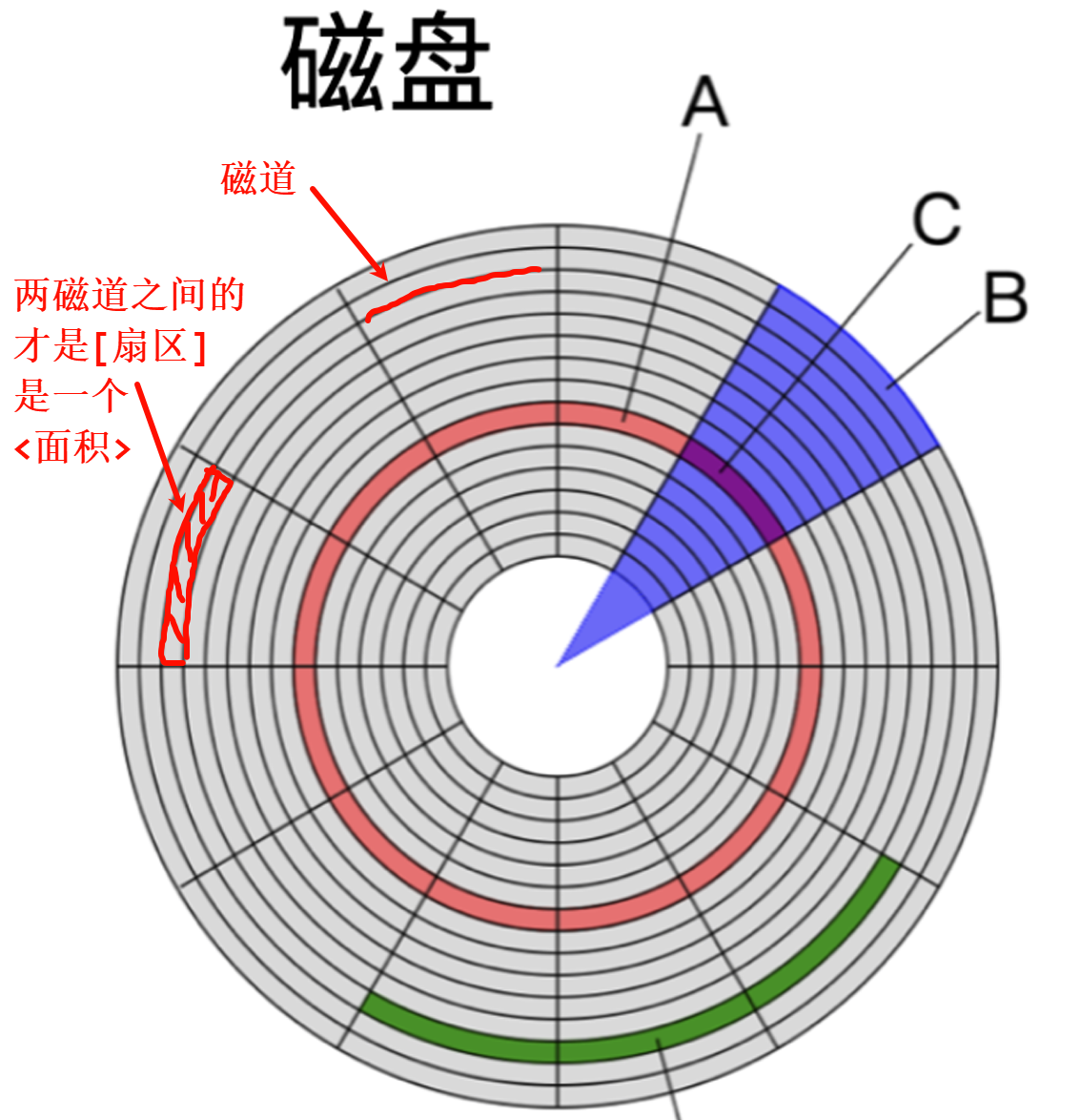 为了组织和检索数据, 会将磁盘组织成特定的结构, 这些特定的结构就是磁道、扇区和柱面