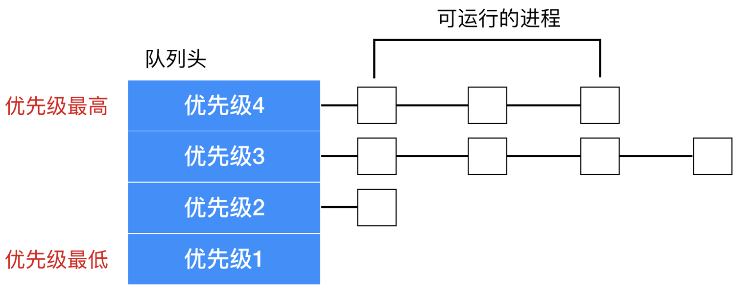下面展示了一个四个优先级类的系统