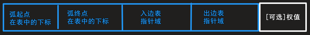邻接表对边的操作显然很不方便,因此,我们可以仿照十字链表的方式,对边表结构进行改装,重新定义的边表结构如下:
