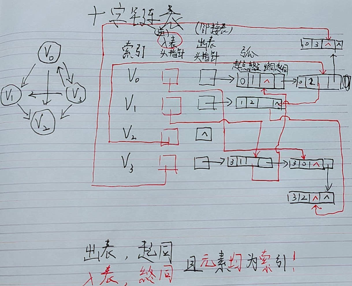 十字链表的好处就是因为把邻接表和逆邻接表整合在了一起,这样既容易找到以Vi为尾的弧,也容易找到以 为头的弧,因而容易求得顶点的出度和入度。