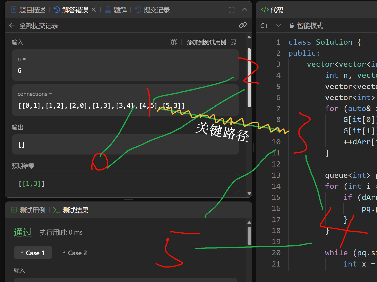 // 选取一个点作为根节点,dfs向下递归,过程中识别出哪个边是「关键连接」