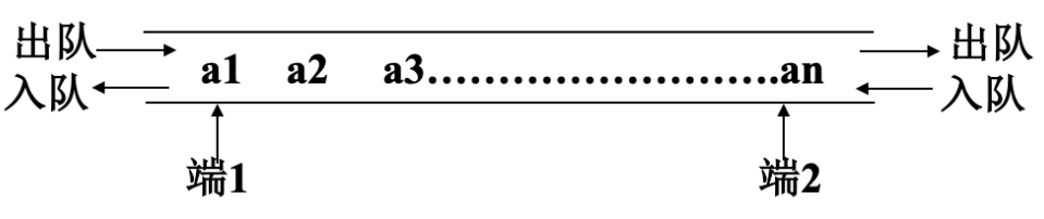 • 这种定义,是方便一个结构来实现栈和队列,当我们只允许使用一端出队、入队操作的时候, 他等价于一个栈。当限制一端只能出队,另一端只能入队,他就等价于一个普通队列。