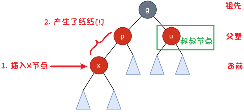 - 插入节点着红色