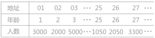 例如有一个从 1岁到100岁的人口数字统计表,如下表所示: