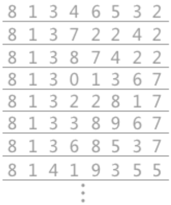 例如下表中列举的是一部分关键字,每个关键字都是有8位十进制数组成: