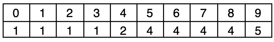 统计出数组的长度为 9990+1=1099-90+1=10 ,偏移量等于数列的最小值 9090。对于第1个整数 9595,对应的统计数组下标是 9590=595-90=5