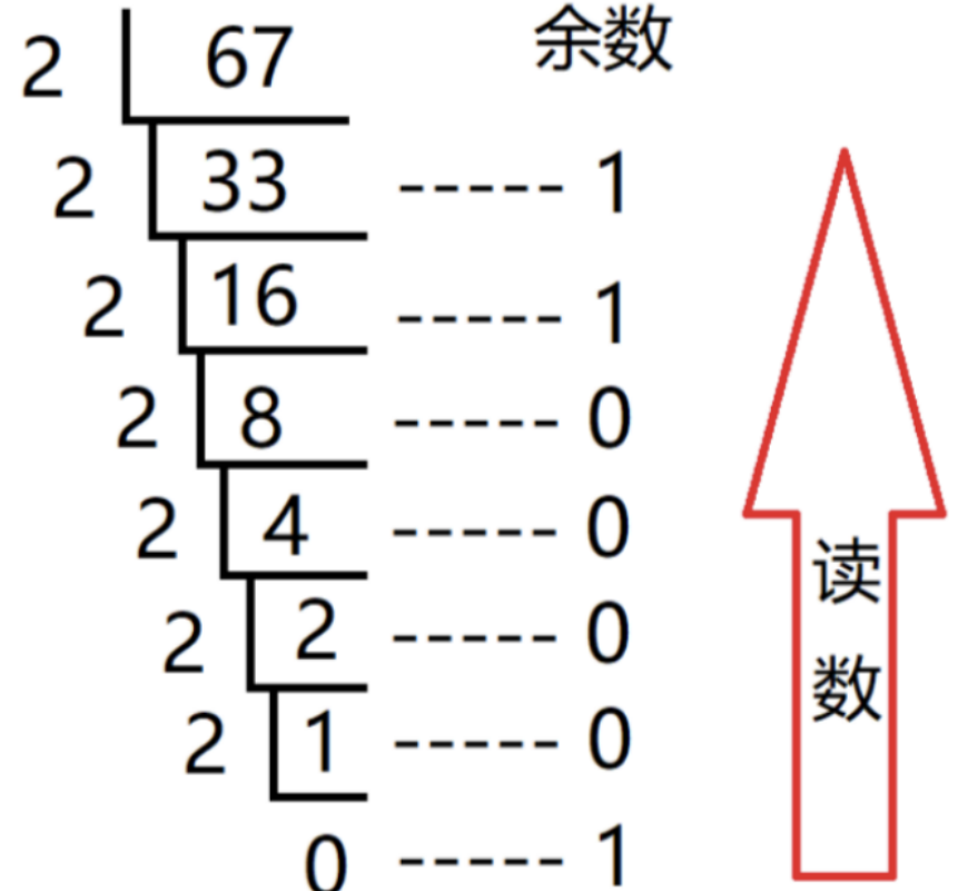 • 如果商不为 0,重复步骤 1 和 2,直到商为 0,此时余数的倒序排列就是所求的 x 进制数。