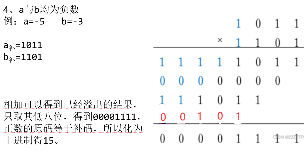 那么在此基础上,在手动计算时可以将有符号数的乘法运算分为以下四种情况: (以四位补码 , 结果为8位为例)