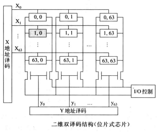 由X选择线(行选择线)和Y选择线(列选择线)来选择所需单元,不同位平面的相同行、列上的位同时被读出或写人。