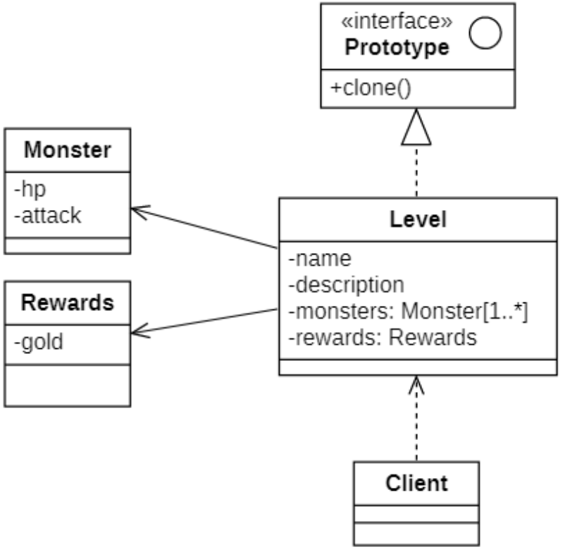 Wikipedia says: The prototype pattern is a creational design pattern in software development. It is used when the type of objects to create is determined by a prototypical instance, which is cloned to produce new objects.原型模式是软件开发中的一种创造设计模式。当要创建的对象类型由原型实例确定时使用,该实例被克隆以生成新对象。