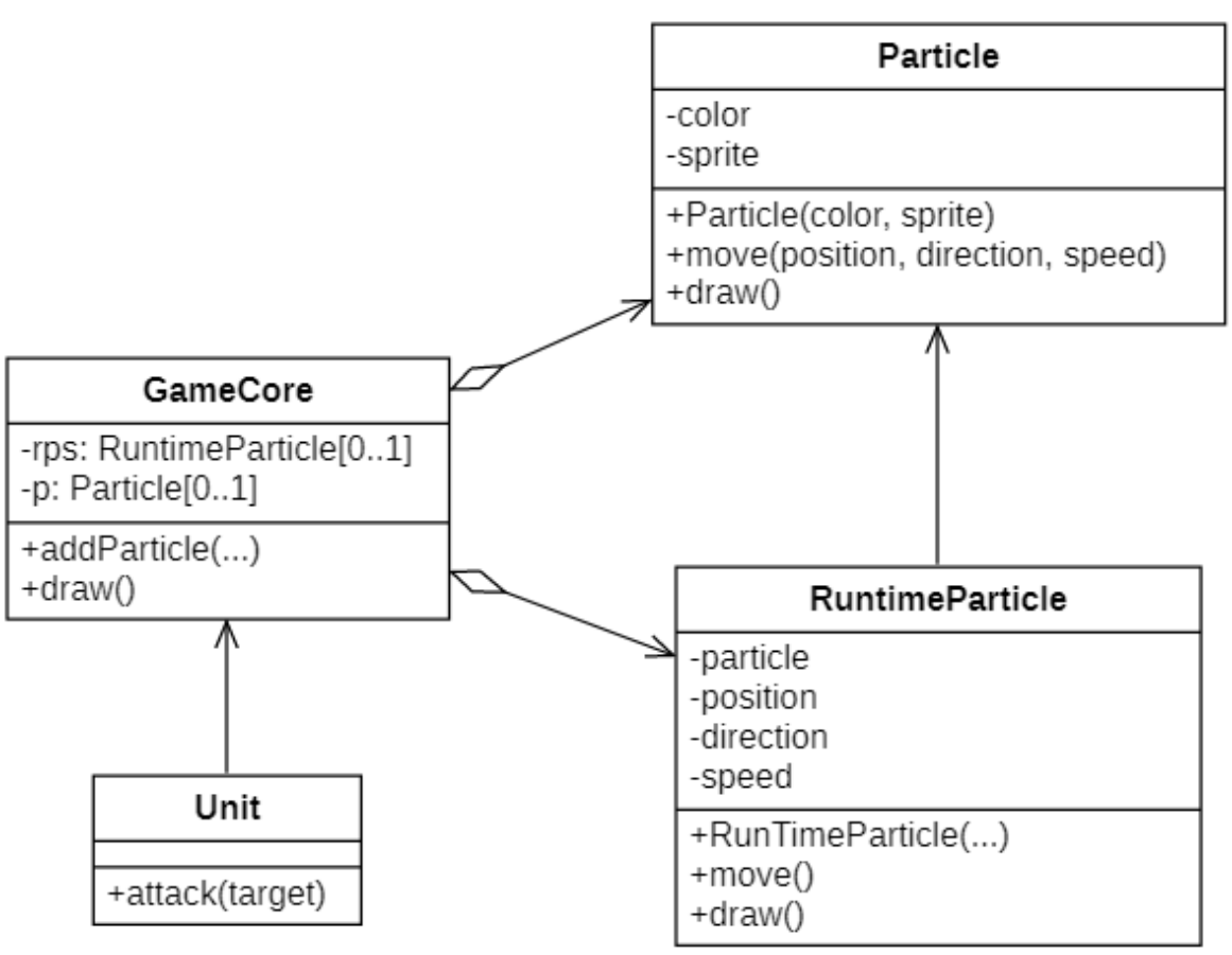 在游戏运转的时候,战斗单位不断的产生粒子,会导致内存占用持续增加,因为一个粒子里面包好了非常占用内存的精灵图片,而不巧的是每个相同类型的粒子里面使用精灵图片是相同的,导致相同的资源重复占用内存资源,为了解决这个问题可以使用享元模式来解决。