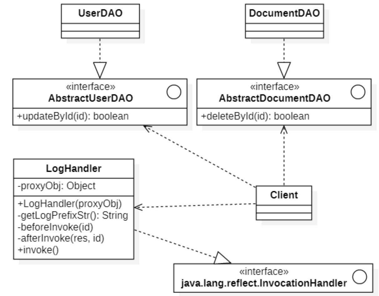 AbstractDocumentDAO ddProxy = (AbstractDocumentDAO) Proxy.newProxyInstance(AbstractDocumentDAO.class.getClassLoader(),new Class[]{AbstractDocumentDAO.class},logHandler);