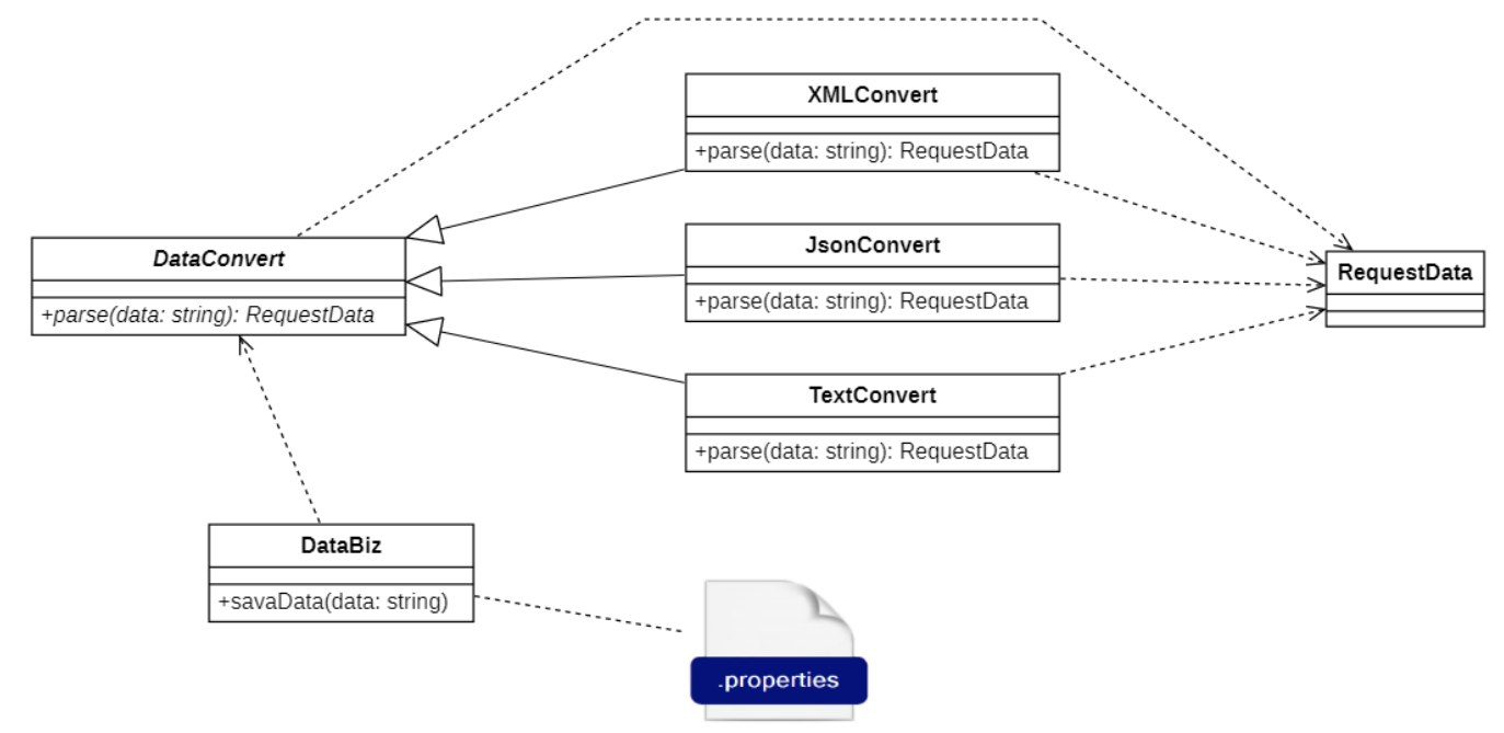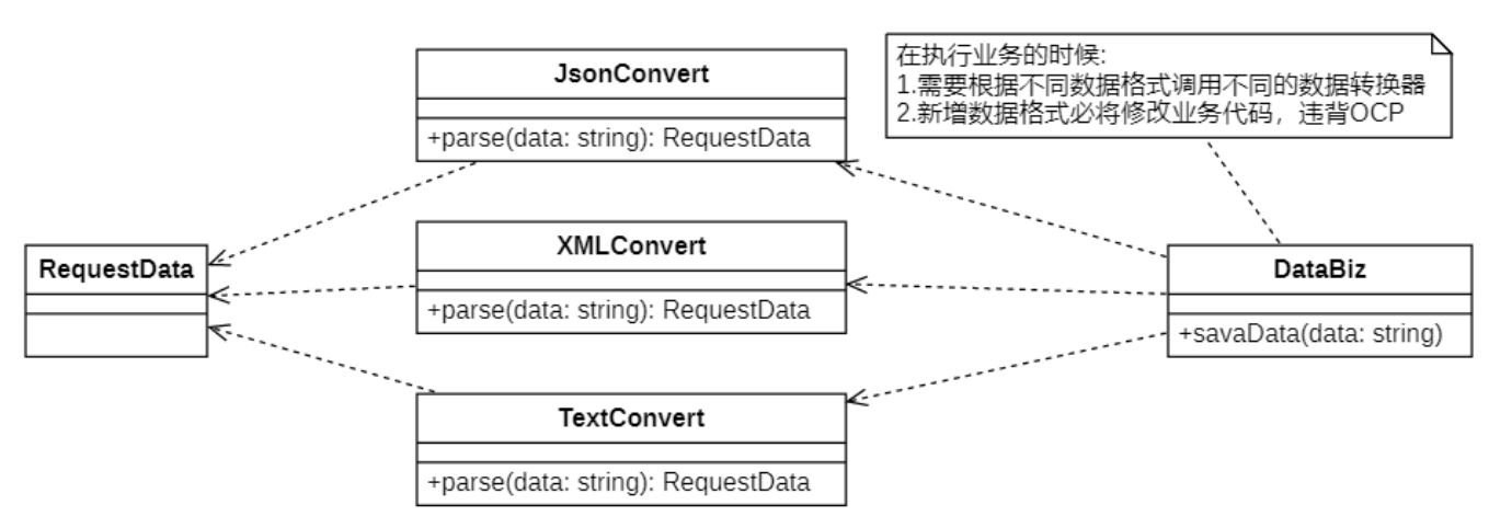 基于依赖倒置原则,新增一个抽象的转换器DataConvert,DataBiz针对DataConvert进行编程,然后根据里氏替换原则,程序运行时对父类进行替换,根据开闭原则,将运行对象指定设置到配置文件中。