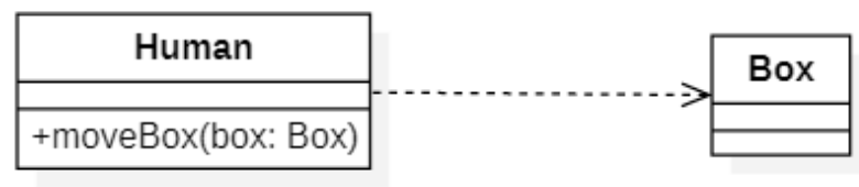 依赖(Dependency)关系是一种使用关系,在大多数情况下依赖关系体现在某个类方法参数上使用另一个类的对象作为方法参数。