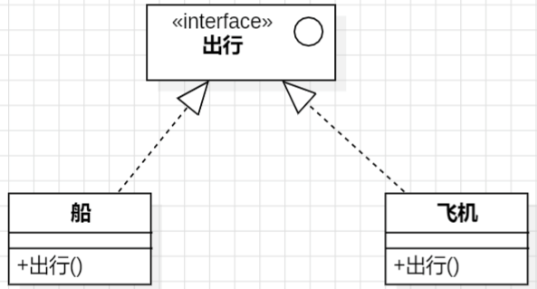接口(Interface) 之间也可以有与类之间关系类似的继承关系和依赖关系,接口与类之间同时还存在一种实现(Realization)关系,在这种关系中类实现了接口中所有的操作。