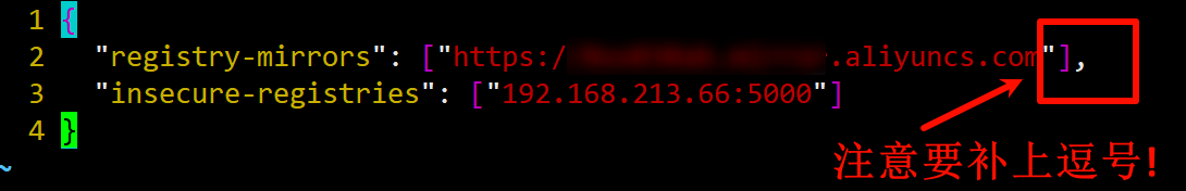 vim命令vim /etc/docker/daemon.json后, 新增如下内容: (注: ip 应该是你的 Linux 的 ip)