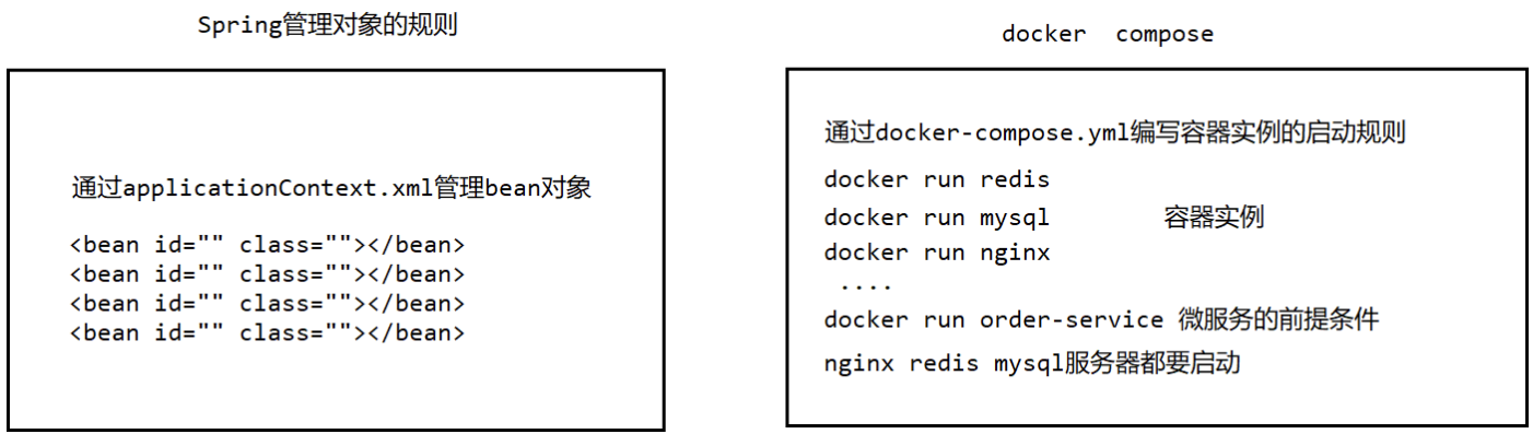 例如: 要实现一个Web微服务项目,除了Web服务容器本身,往往还需要再加上后端的数据库mysql服务容器,redis服务器,注册中心eureka,甚至还包括负载均衡容器等等...